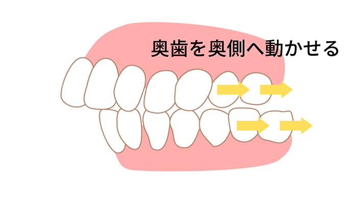 一方、マウスピース矯正の中でもインビザラインは、奥歯をさらに奥側へ動かすことを得意としています。奥歯を動かすことでスペースを確保し、なるべく抜歯しない矯正治療の実現に一役買っているのです。